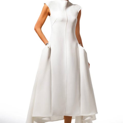 Er du brud snart og ønsker en enkel og stilig, midi kjole, som veier'ingenting' og vedlikeholdsfri før bruk, er denne et godt valg♡