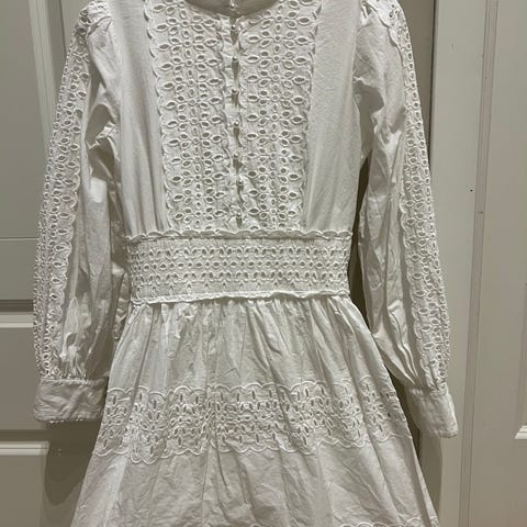 Whitestory-knytekjole i mørkegrønn. Kan knytes og styles på uendelig mange måter. Den er designet for å passe ulike kroppsfasonger og størrelser. Kjolen er one size, men lengden er tilpasset høyde på 162 cm. Du bør derfor ikke være så mye høyere om du vil ha den lengre enn til anklene. Brukt to-tre ganger, er i veldig god stand og har ingen flekker.
