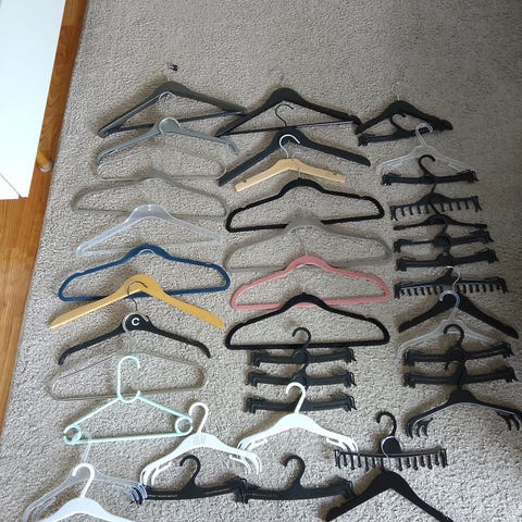 60 eldre klesklyper laget av tre selges. Noen klyper er lite brukt, og ser nesten nye ut. Andre er synlig brukt. Selges for 50 kr.