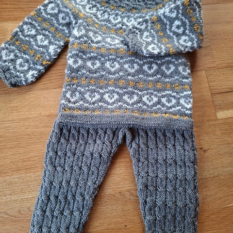 Håndstrikket sett, genser og bukse