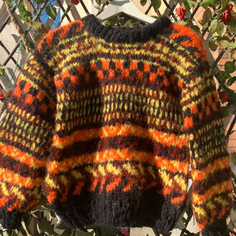 Flott hjemmestrikket genser ubrukt i flotte farger. Genseren har fin passform, lengde 56 og brystvidde 47. Kan sende med PostNord direkte hvis ønskelig. Ta gjerne kontakt ved interesse.