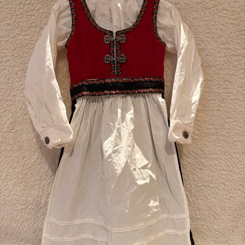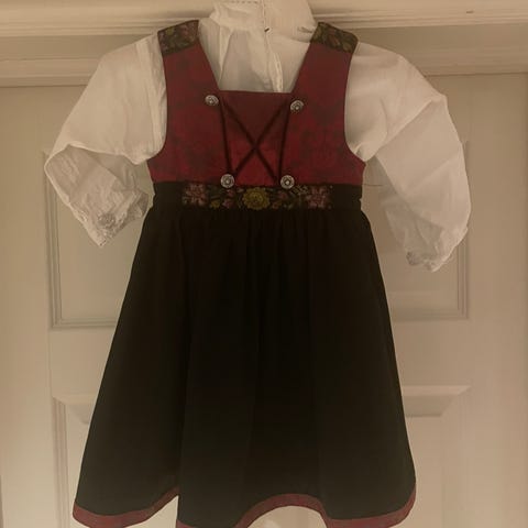 Pent brukt festdrakt til jente i størrelse 104 (brukt fra 4-6 år her), med cape i størrelse 110/116 som er brukt samtidig.