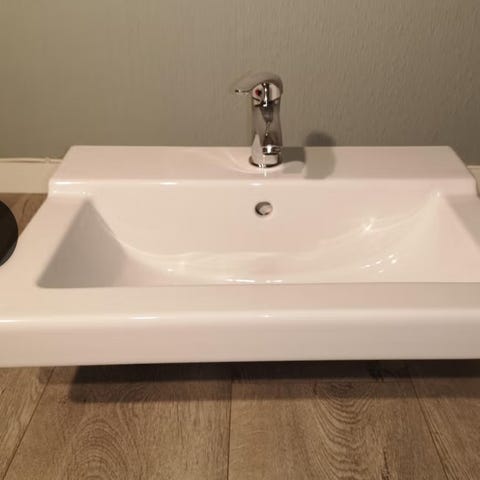 Selger ubrukt servant til bad. Aldri montert. Servanten har hull for blandebatteri og overløp. Nøytralt og tidløst design som passer de fleste baderom.
