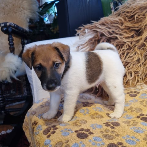 Vi har en nydelig og frisk NKK reg. Jack Russell terrier tispevalp som er klar for å finne sin egen familie og et hjem fylt med omsorg, aktivitet og kjærlighet.