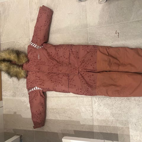 Jenta vår har hatt denne Reflex vinterdressen i 2 år. Veldig god vinterdress. Nå er den for liten for henne, så vi kjøpte akkurat lik (har vært så fornøyd) bare i en større størrelse. Etter som jeg kan se, er det ingen feil eller skader på dressen. Det eneste er en fotstropp som mangler. Den er størrelse 104, og er i en nydelig rosafarge. Materialet gir beskyttelse mot vær og vind. (Jeg kan ikke garantere hvor vanntett den er, vi har ikke brukt den når det har vært regnvær). Jeg vasket den nettopp i maskinen på 40 grader. Kanskje det kan være lurt å impregnere den. Du ser😊 Alt i alt - en veldig god dress😊