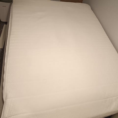 Må hentes selv. Senga kan bli dratt ut en dobbelt seng
