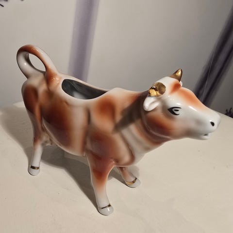 fløte og melkekanne ku, helt ny