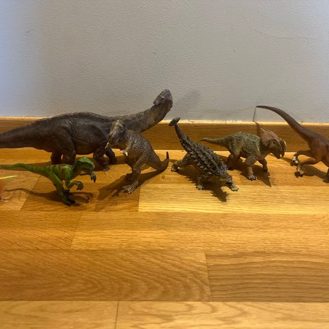 Selger forskjellige dinosaurer og dyr fra Papo, Schleich og Jurassic World. Disse figurene har bare stått som hylle pynt. Figurene selges for halvparten eller under det de var verdt, pruting vil derfor bli ignorert.