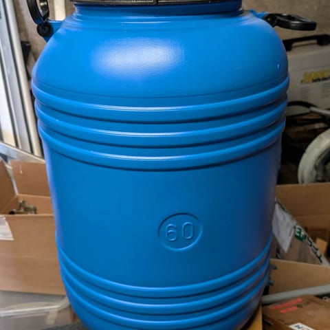 Metall tønne med krus og tappekran