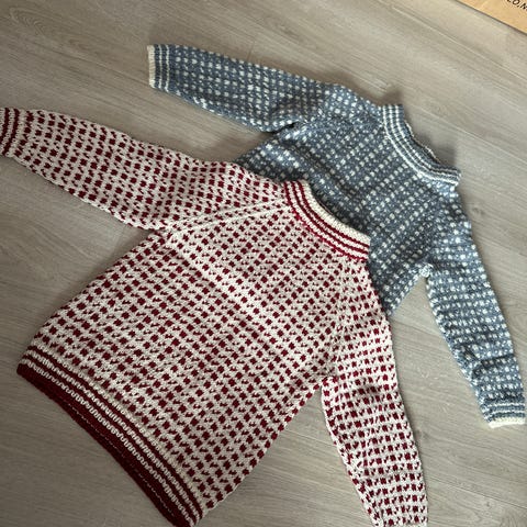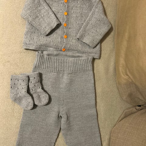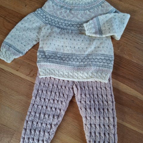 Håndstrikket sett, jakke og bukse