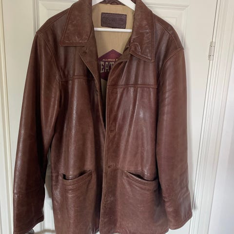 Skaprydding! Unik lite og pent brukt Hollies halvlang vinterjakke i hvit stoff med brune skinndetaljer i front og semsket skinn bak på rygg og rundt håndledd. Kjøpt på -80 tallet. Litt liten i størrelse så tilsvarer nok str. Large. Avbildet på selger som er 178 cm høy. Jakken er i bra stand uten noen form for skade eller mangler, men det er noen små brune flekker bak/under arm samt en litt større lys brun flekk i front på høyre side (se bilde).