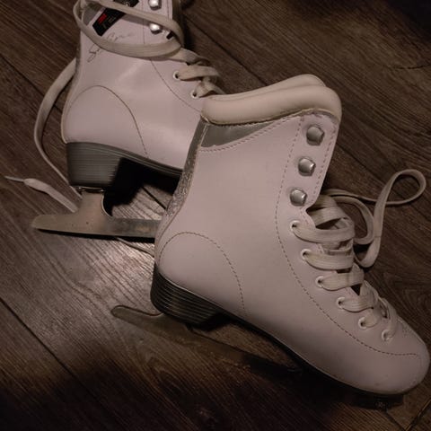 Safine skøyter for barn i størrelse 36. Skøytene er hvite.