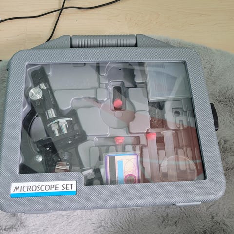 Micro Science Complete Microscope Sett med flere objektglass, forstørrelsesglass og tilbehør. Leveres i bærbar koffert for enkel oppbevaring og transport. Passer for utdanning og hobbybruk.