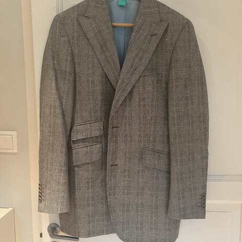 Mario Conti Avello Massimo Blazer i beige farge, størrelse 48 for menn. Laget av lin materiale med en blanding av 100% lin i ytterstoff og 50% lin, 50% viskose i fôr. kan følge med ubrukt bukse fra dressmann for kr 100