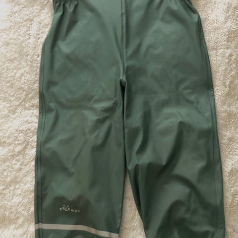 Pent brukte regnbukse i nydelig, grønn farge som kan brukes av begge kjønn.
