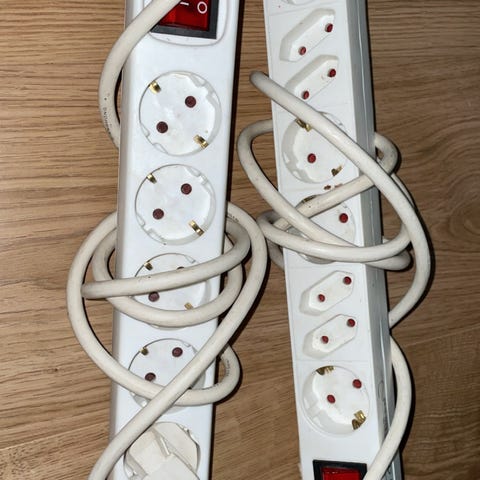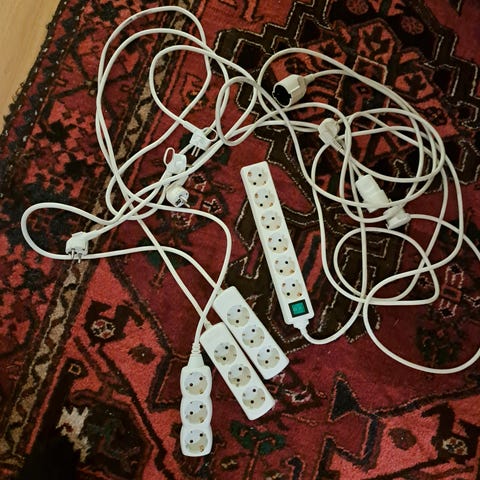 E: Pris kr 30,-. Skjøteledning/grenkontakt m/4 uttak.