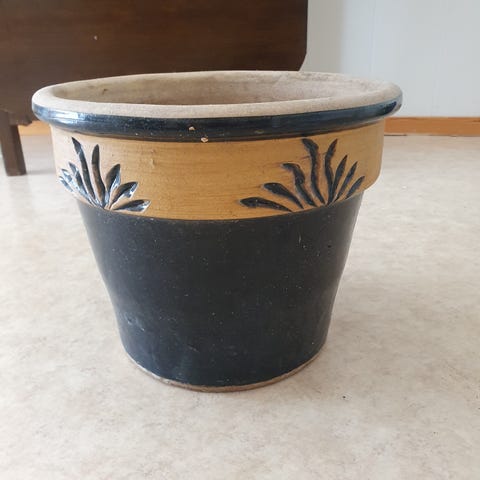 Potten har en ribbet tekstur og er egnet for innendørs eller utendørs bruk til planter og blomster. Potten har et dreneringshull i bunnen.