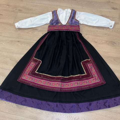 Liv midje 82cm, kan legges ut i sidesøm og utvide midjemål ved å flytte på hemper foran.