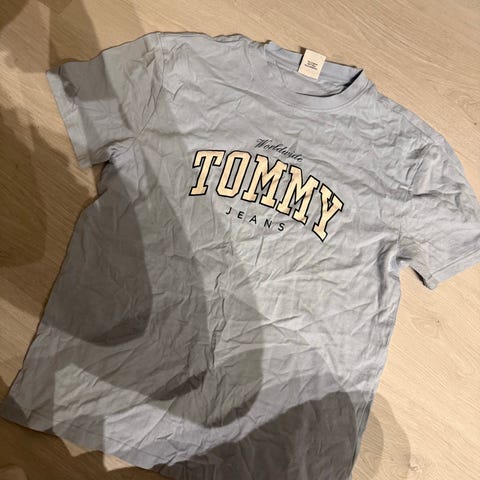 Tommy Hilfiger T-skjorte i blå bomull, størrelse M for herre. T-skjorten har kort erme og logo på brystet samt en liten logo på ermet.