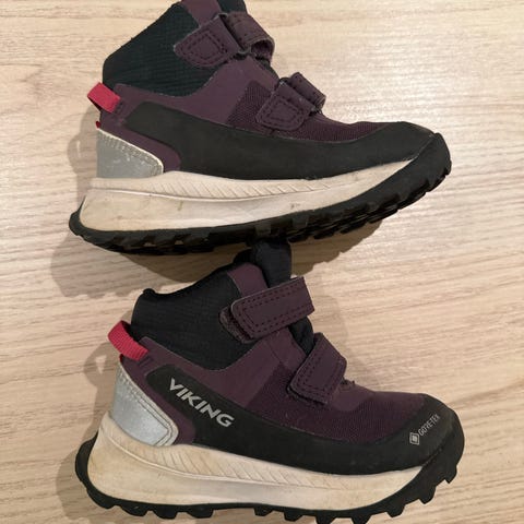 Viking barnesko i størrelse 25 for unisex. Skoene har borrelåslukking og er laget i slitesterkt materiale med en kombinasjon av tekstil og syntetisk forsterkning. Designet for å gi god støtte og komfort til barnets føtter. Watershield