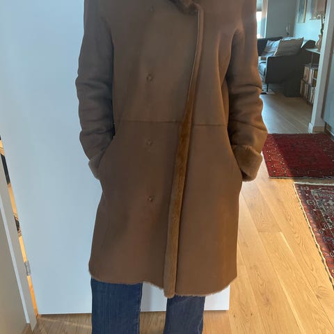 Lammeskinn pelskåpe, str 36/38, i sort, selges kr 4000.