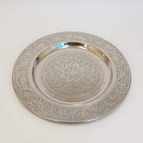 Selger 2 stk dekorasjonsfat / lysfat i metall med innskåret mønster, egnet for dekorasjon eller servering.