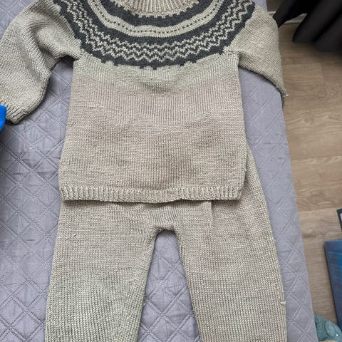 Håndstrikket sett, genser og bukse