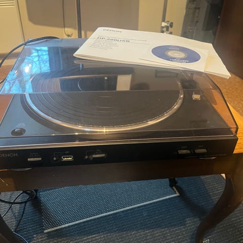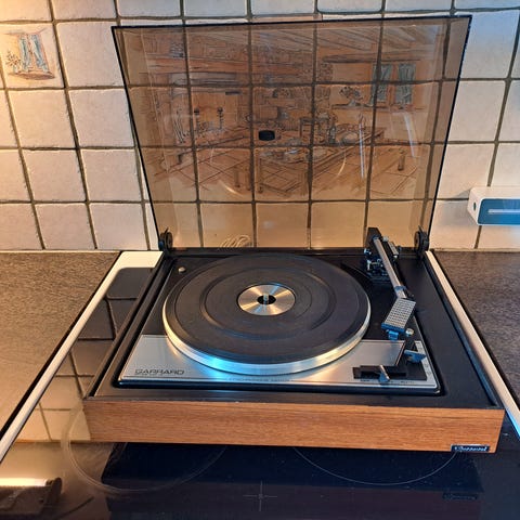 Pen velholdt platespiller i teak. Fungerer som den skal bortsett fra "påstigning" ved start. Ellers er ting som de skal. Service innvendig på bevegelige deler, så alt ser rent og pent ut. Nåletrykk kalibrert. Nøye rengjort utvendig. Et noe skadet lokk følger med.