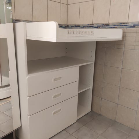 Designet for å gi en funksjonell og plassbesparende løsning for bleieskift og oppbevaring av babyartikler.