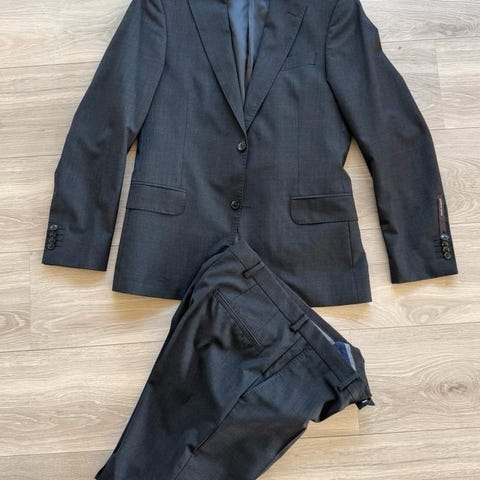 Hugo Boss Blazer i blå farge, størrelse 48 for herre. Laget av bomullsmateriale 70 % og polyamid. Jakken har knapper foran og stripete foring innvendig.
