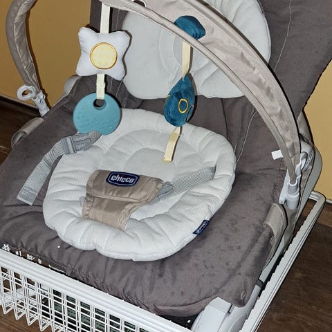 Godt brukt barnestol. Har en del flekker som jeg tror kan fjernes dersom man bruker en type tepperens eller lignende.