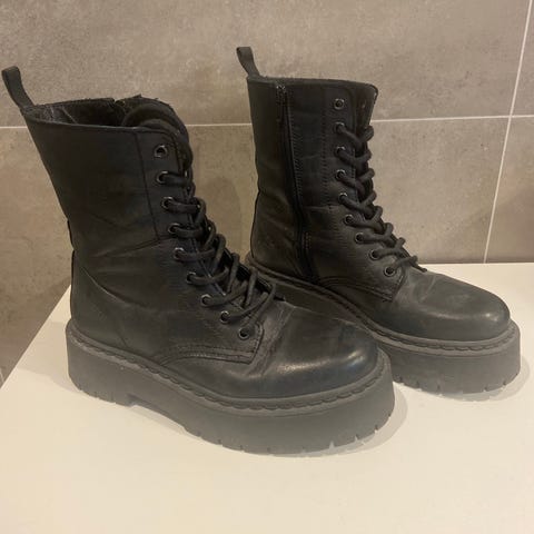 Knehøye støvler fra Bianco i lysgrå farge. Str 39