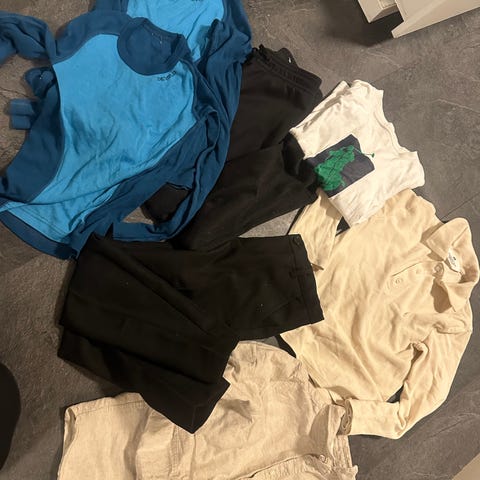 Et sett med yttertøy selges. Bukse er lite brukt mens jakken er godt brukt og mangler hette. Det er hull øverst se bildet. Bortsett fra det er den hel og fin. Brukt av jente. Passer til barn fra 5 til 6 år.