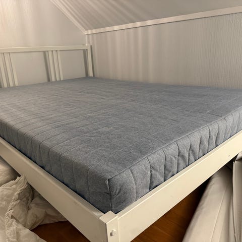 Selger en pent brukt sengramme + madrass fra IKEA. Opprinnelig pris på sengramme 2995 kr og opprinnelig pris på madrass 4395 kr. Selger det samlet for 3000 kr. Overmadrass fra IKEA kan følge med gratis hvis ønskelig. Kan hentes fra og med 31.januar.