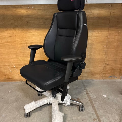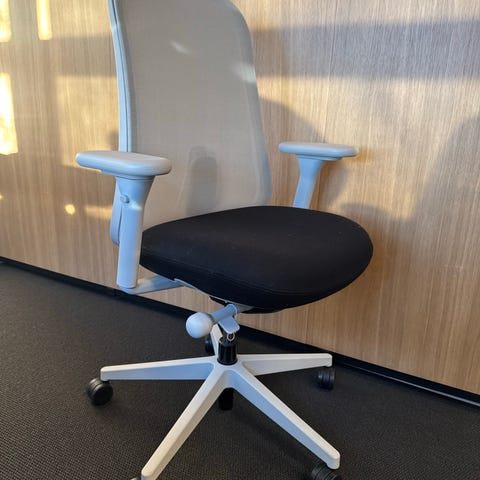 Stolen er hel og pen, med normal bruksslitasje, og fremstår som et solid og elegant møbel for arbeidsmiljøet.