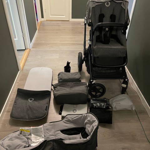 Vogn brukt av ett barn. Både for nyfødt og sener kan overdel byttes ut med sportsdel. Sovepose til godt kalde dager i samme merke. Ekstra topp i fargen kremhvit, varmt skinn, regntrekk,