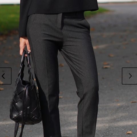 Tidligere eier har klippet bort lappen med informasjon om størrelse, men etter å ha prøvd buksen tror jeg den må være i størrelse tilsvarende 44. Den er i en ankellang modell.