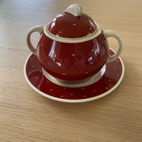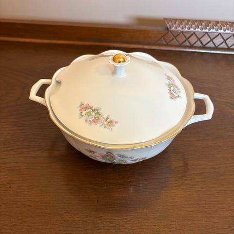 Porsgrund Porselen sukkerskål med lokk og håndtak