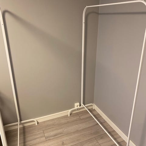 Pent brukt klesstativ med skohylle under fra Clas Ohlson.