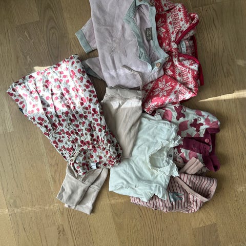 - 1 stk bukse i musselin fra KappAhl, str. 86 (brukt som lang shorts)