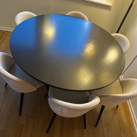Flott spisebord med klaffar og 8 stoler,god plass til heile familien