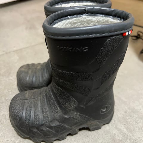 Viking barnestøvler for unisex barn i størrelse 21. Støvlene har borrelåsfester og en solid såle med godt grep. Innvendig er de foret med mykt materiale for komfort.