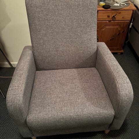 En flott lenestol i god stand, men den har noen flekker som jeg ikke har prøvd å fjerne og har nok godt av en rens.