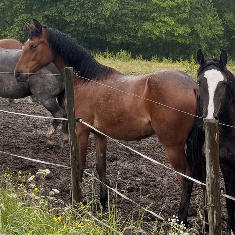 Du som hesteeier har kun ansvar for å møkke 2 dager. Jeg møkker resterende dager, sørger for høy, vann og tilsyn.