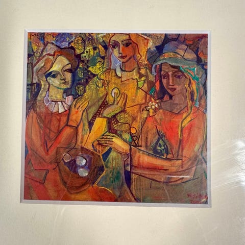 Th. Rittun Maleri To kvinner og fugler