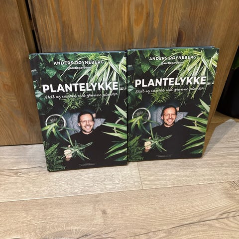 Anders Bøynebø Plantelykke bok med fokus på stell og inspirasjon til grønne planter. Inneholder veiledning og tips for plantepleie, illustrert med bilder. Passer for planteentusiaster og de som ønsker å lære mer om innendørs planter.