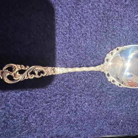 Sølv syltetøyskje 830 S ,dobbel rokokko ,13 cm 400 kr, kan sendes med.posten