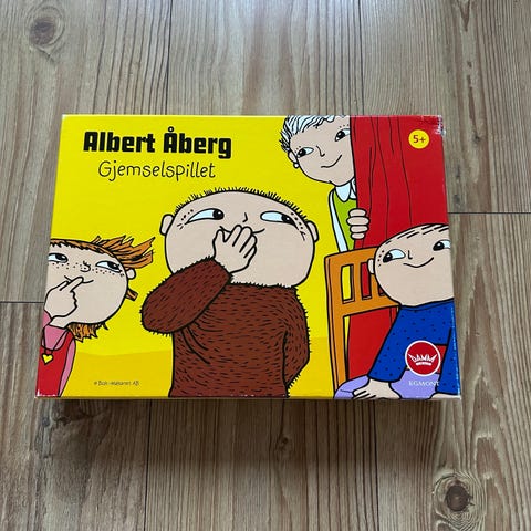 basert på den kjente barnebokfiguren Albert Åberg. Spillet leveres i original eske med illustrasjoner fra serien. Passer for barn og familier som ønsker et spill med Albert Åberg-tema.