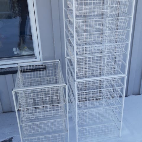 Diverse trådkurver med stativ.