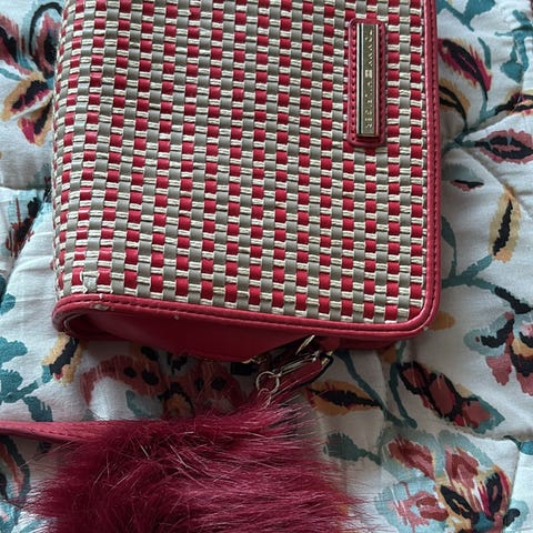 Vesken har et mønstrete design i rødt, svart og hvitt med justerbar skulderrem og lukking med vridbar spenne. Låsen har en liten strek men kan knapt ses når den er lukket💙Klassisk liten modell. #Tommyhilfiger#purse#veske#Tommy#Stockholmstil